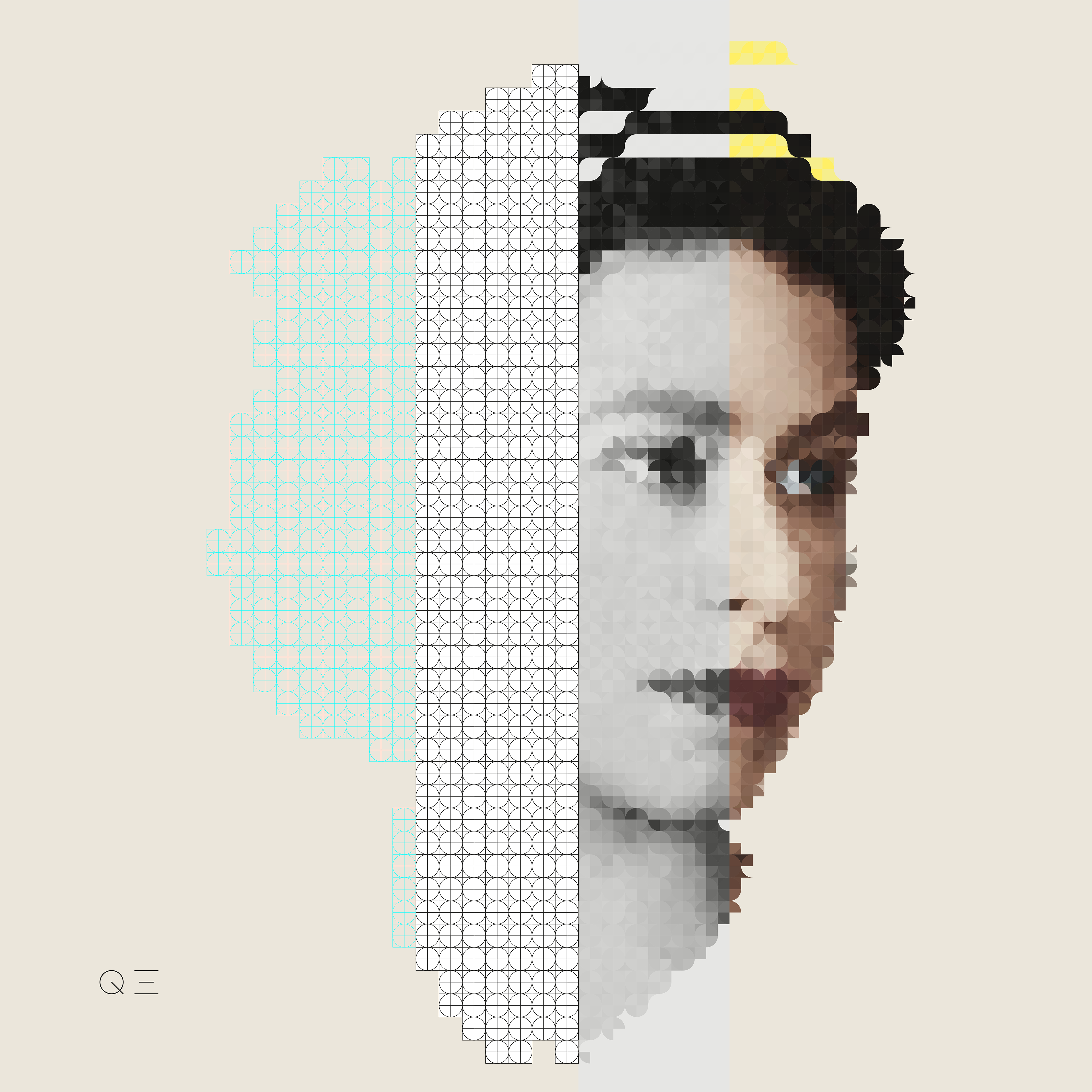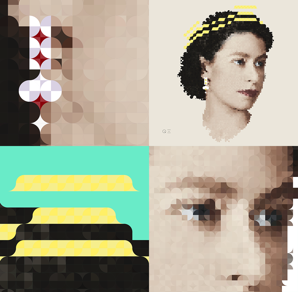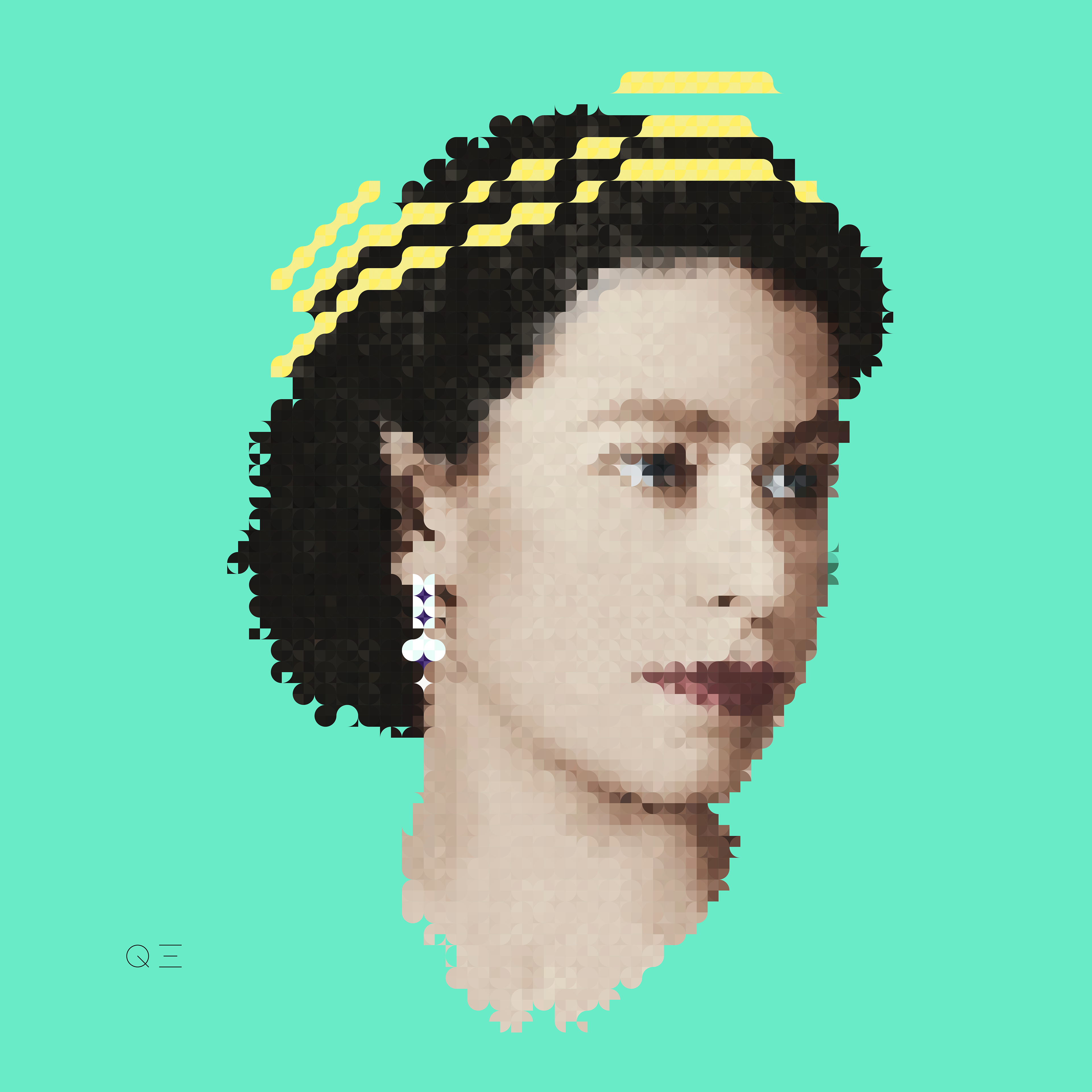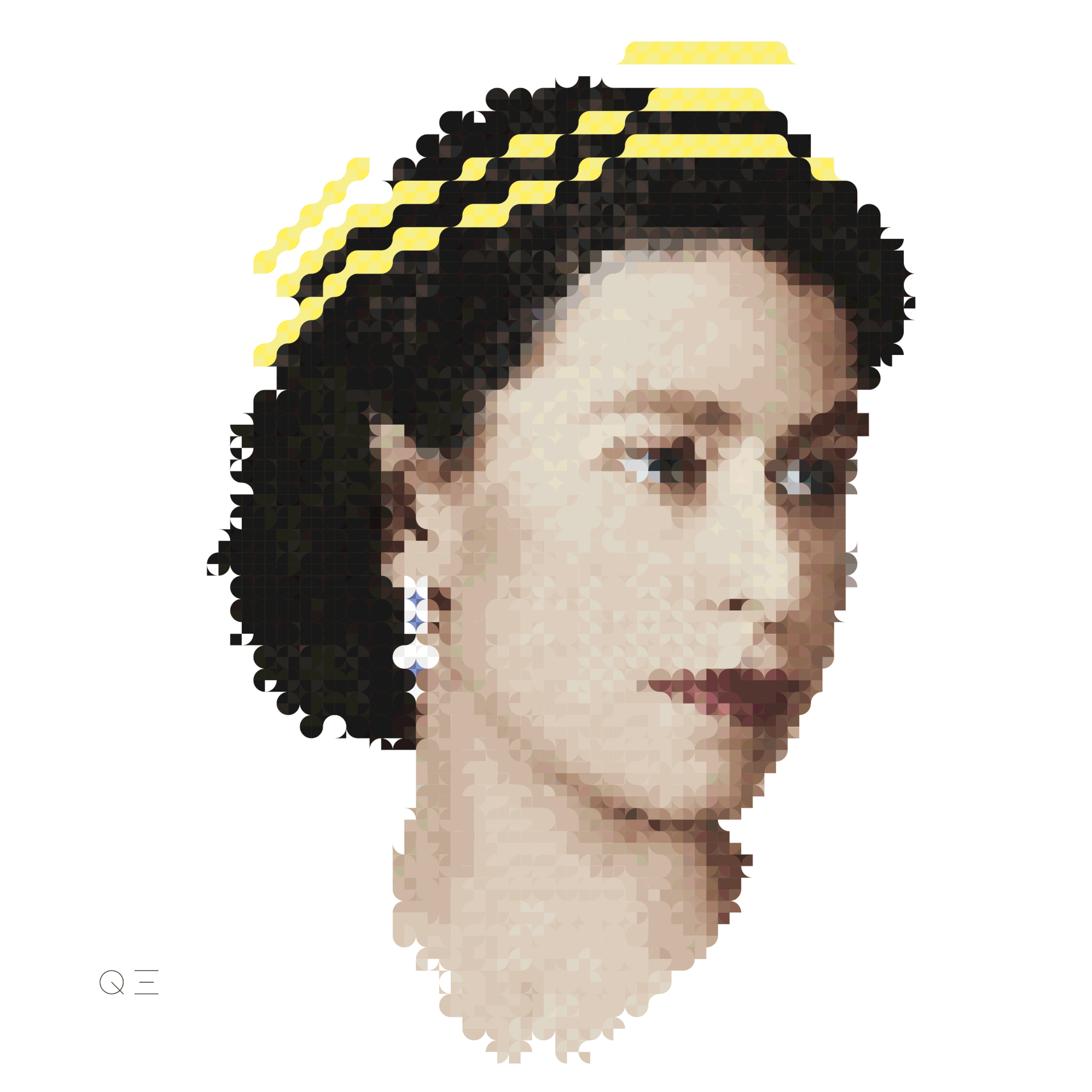 QE is made of my CIRPIX - circular pixel - handmade designed using Adobe Illustrator.